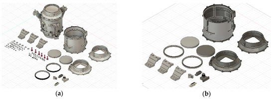 (a) Original subassembly 8 (82 pieces). (b) Subassembly 8 prepared for manufacturing (14 pieces).