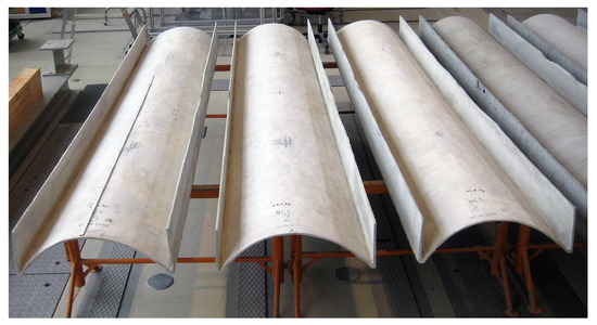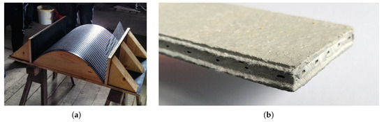 - Scholzen, A.; Chudoba, R.; Hegger, J.; Will, N. Light-weight precast shell elements made of textile reinforced concrete: Production, experimental investigations and application potential. Beton- und Stahlbetonbau 2016, 111, 663–675. [Google Scholar] [CrossRef]