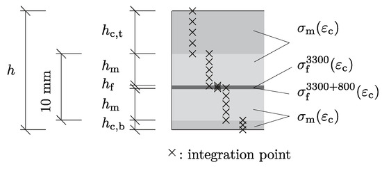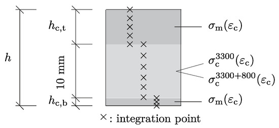 Finally, the resolved cross section model was combined with the additional layers of the plain-concrete ) similarly to the model version (ii). The parameters of the cross-sectional layup corresponding to the 12 sections are specified in Table 3. The association of the layer thicknesses to the individual layers is depicted in Figure 21.