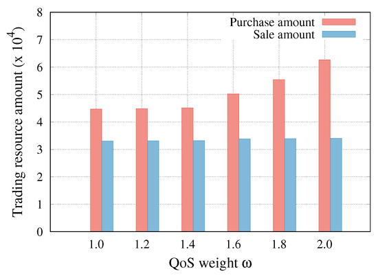 Figure 8 shows the total amount of the resource that the tenant trades during the lifetime of the slice. When a high QoS weight was applied, the tenant unnecessarily purchased more resources. This implies that a higher QoS weight can decrease the number of QoS violations but also lead to a lower profit.