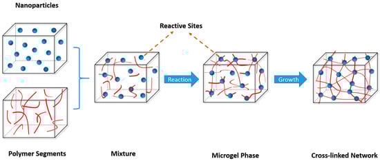 where Gbulk is the change in the matrix free energy without considering the surface effect, σ is the surface free energy coefficient, and A is the surface area of the gel particles. Therefore, the thermodynamic equation (Equation (1)) of the curing process can be rewritten as: