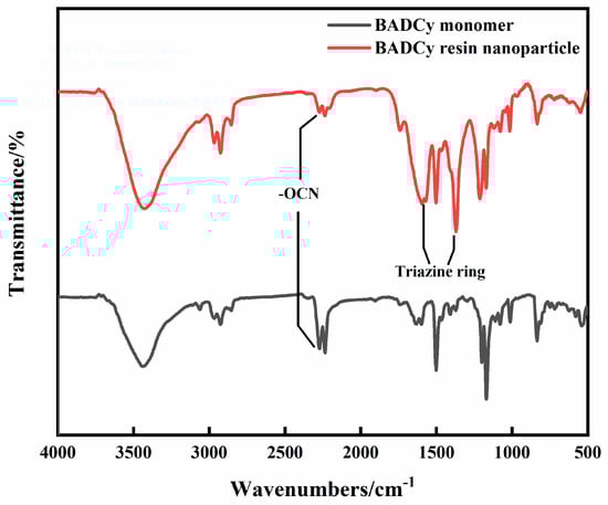 FT-IR of the BADCy monomer and BADCy resin nanoparticle.