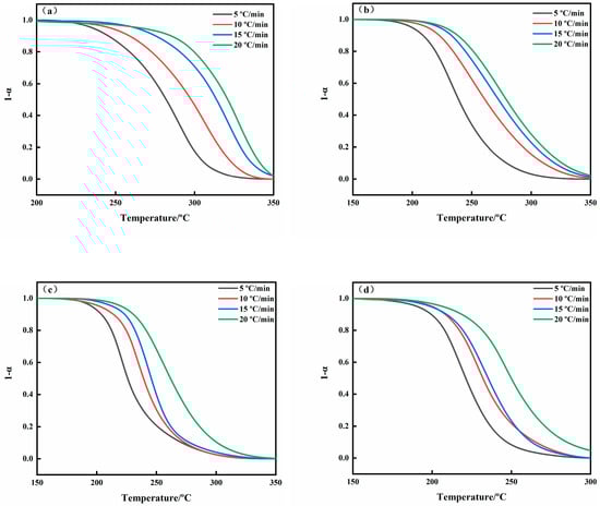 Differential scanning calorimetry (DSC) was carried out using a TA Instruments DSC25 calorimeter (TA Instruments, New Castle, DE, USA). Each sample was tested at 5, 10, 15, and 20 °C/min, over a range of 50-380 °C and with a N2 flow of 50 mL/min.