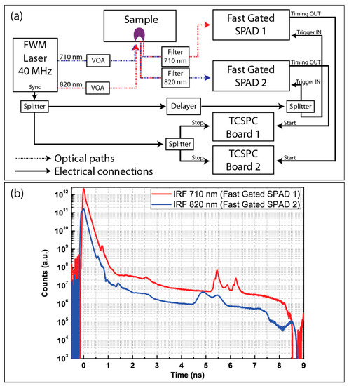 - Tosi, A.; Dalla Mora, A.; Zappa, F.; Gulinatti, A.; Contini, D.; Pifferi, A.; Spinelli, L.; Torricelli, A.; Cubeddu, R. Fast-gated single-photon counting technique widens dynamic range and speeds up acquisition time in time-resolved measurements. Opt. Express 2011, 19, 10735–10746. [Google Scholar] [CrossRef] [PubMed]
