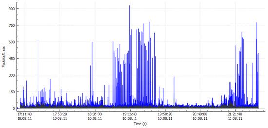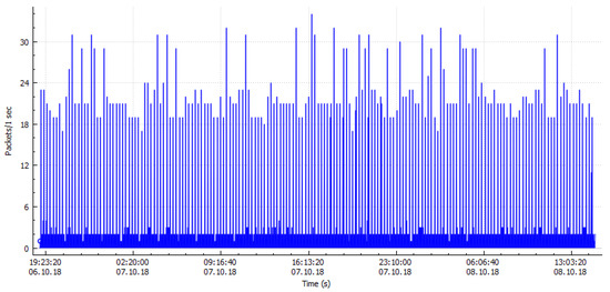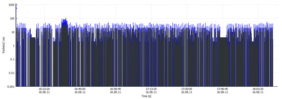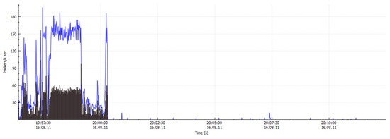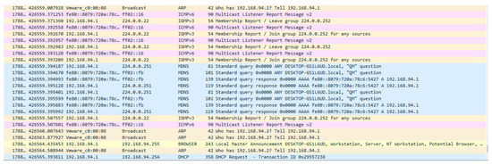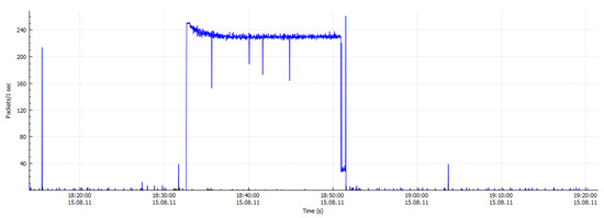 Figure 9 and Figure 10 demonstrate the working environment of Wireshark setup to capture the network traffic to obtain the CSV files for further analysis and experimentation. For non-malicious traffic (benign traffic), while running the Wireshark on real-time network traffic, we used to access the well-known and the most trusted network traffic for example UESTC intranet, thus the data packets were captured and stored. Figure 11 shows the simulation of non-malicious traffic along with date, time, duration and packets per second. Wireshark has the capability to decrypt Secure Sockets Layer (SSL)/ Transport Layer Security (TLS) network traffic for packet analysis [45]. The mechanism of decrypting [46] presented an analysis on how to decrypt of SSL/TLS network traffic. Different decryption procedures and techniques have been used by leading companies for encrypted malicious activities detection. In addition, the SSL/TLS-transmitted traffic interception and decryption approaches were established and validated by Martin et al. [46]. The proposed strategy was utilized for distant connection eavesdropping, enabling transmitted data to be decrypted in a near real-time mode. There have been two fundamental inspection mechanisms for SSL/TLS traffic, depending on what kind of pertinent information and certificates are obtainable and how the devices are installed on the network [47,48].