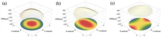 Wavefront shapes induced by the thermal effect (a) by the temperature-dependent refractive index change, (b) by the thermal expansion, and (c) by the PE effect of the Ti:sapphire crystal, in case of [62].