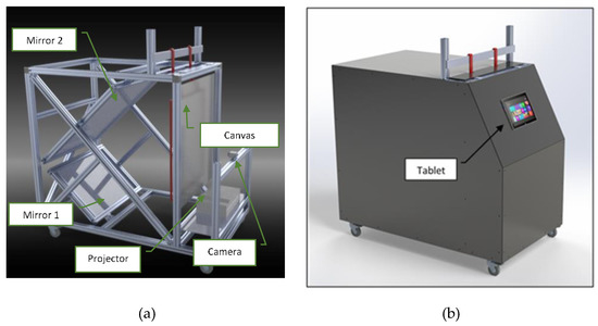 Experimental tests showed that, due to the item thickness and shape, the minimum distance between the projector and the frame needed to be set at 1.8 m, in order to avoid shadow blurring. As depicted in Figure 12a, the items cast a very sharp and uniform dark shadow on the canvas. At the same time, the wires appeared thinner than (for instance) the ones shown in Figure 5b.