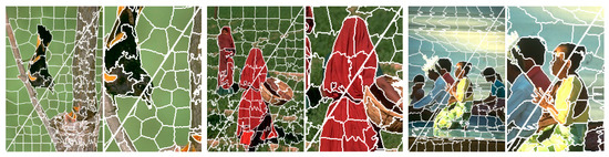 - Felzenszwalb, P.F.; Huttenlocher, D.P. Efficient graph-based image segmentation. Int. J. Comput. Vis. (IJCV) 2004, 59, 167–181. [Google Scholar] [CrossRef]