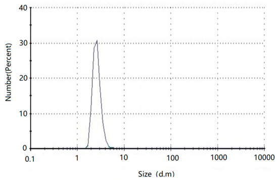 The DLS measurement demonstrates (Figure 6) that the average size of the AuNPs formed from the C.sinensis peel at pH = 11 adjusted after the reaction in colloidal solution was 2.11 ± 1.01 nm (1.75 ± 0.86 by ImageJ). The reasons for the difference in size distribution between DLS and ImageJ software based on TEM are as follow: (1) DLS measures the hydrodynamic size rather than the bare particle as in TEM; (2) the plant extracts used in this study contain a large number of plant fibers, protein and other substance, which will surround or adhere to the surface of the particles during the formation of AuNPs, resulting in larger DLS size than TEM size; (3) metal crystals have completely different colors from organic matter in TEM images, the biological material on the AuNPs surface disturbs the DLS measurement which could be ignored during manual label the particles size before measurement by ImageJ software. Based on these results, the nanoparticles sizes were evaluated by ImageJ software in this study.
