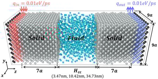 To examine the solid/fluid boundary with atomic accuracy, heat transferred MD simulation is conducted. The mathematical description of microscopic heat flux expression is expressed as follows []: