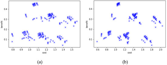 The analysis of the numerical values of the Pareto front did not provide highly relevant insights to the analysis, since the point distributions and related observations had already been carried out. However, it is to be highlighted that regardless of the scheme, the extreme benefit values do not vary significantly, whereas major differences can be seen in the cost values.