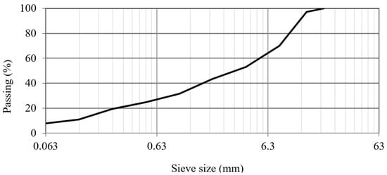 The specimens were manufactured in the laboratory according to EN 12697-35:2016 [31] and compacted according to EN 12697-31:2007 [32] using a Gyratory Compactor. In this research, a typical asphalt concrete mixture with a maximum aggregate size of 14 mm (AC14) was investigated. In total, three identical cylindrical specimens (S1, S2, S3) with a diameter of 100 mm and a thickness of 40 mm were made. The asphalt mixture contained 4.3% of bitumen by mass of aggregates. A common 35/50 penetration grade bitumen was used. Table 1 shows the basic properties of the used bitumen and in Table 2 the composition of the mixture is presented. Figure 1 shows the final grading curve of the mixture.