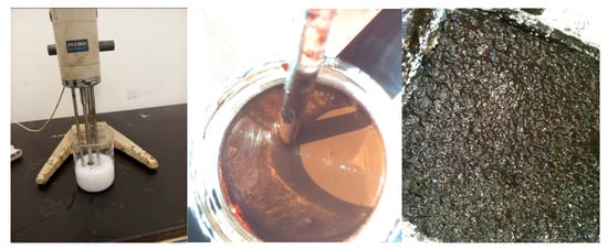 The process of adding nano-titanium dioxide into the carrier of asphalt mixture is described as follows: Titanium dioxide is first dispersed in water, and eventually fused with epoxy emulsified asphalt, the mixture and specimens required for the test were prepared by adding aggregate. The process is shown in Figure 1 (part of the process and data are patented technology and appropriate concealments have been made).