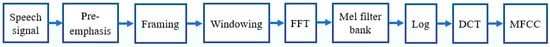 Then the log value of each of the mel spectrum is taken. Finally, a discrete cosine transform (DCT) is carried out to acquire the MFCC feature vector. The complete process of extracting the MFCC feature vector is shown in Figure 3.