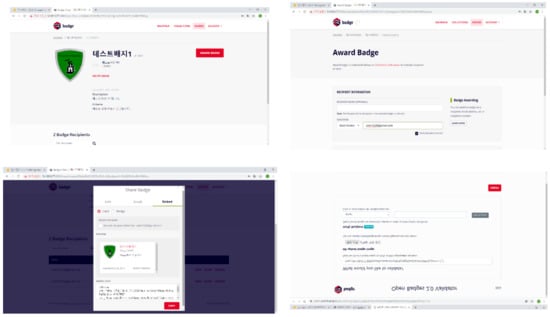 In this research, we use two basic platforms: The first is the Badgr platform for creating the OpenBadge standard-based digital badge, and the second is the Blockcert platform [24], for managing the digital badge generated through the blockchain. The generated digital badge is managed via backpack repository (compatible with Mozilla OpenBadge backpack). These digital badges can be shared via e-mail, cell phone, etc. In addition, these digital media can be promoted to a third party through a social networking service (SNS).