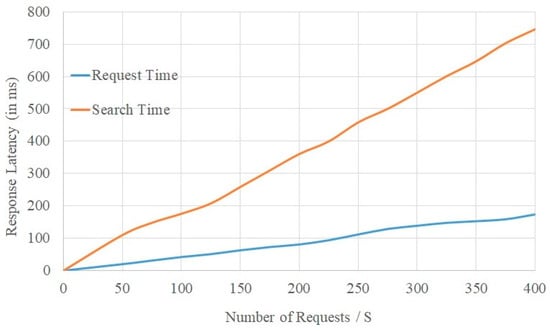 To validate the scheme robustness, the publishing time cost of a transaction (blockchain publishing transactions) was calculated. We initially calculated the size of the transactions in the blockchain, which were by 128 bytes for the private blockchain and 512 bytes for the consortium blockchain. We then set the number of transaction for different cases as n = 500, 1000, 1500, and 2000 to study the scheme under various payloads.