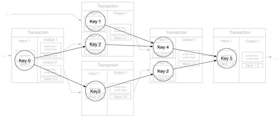 Transaction network with keys shown.
