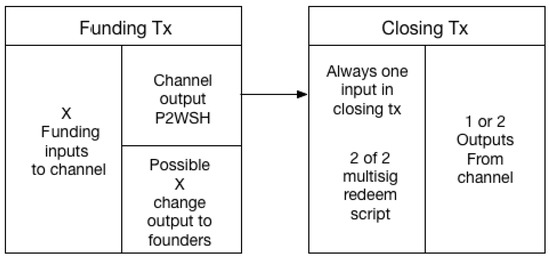 Channel graph with funding and closing transactions.