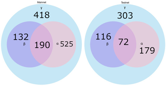 Because the on-chain channel transactions must be of the specific type, the set is guaranteed to include all LN channels closed in the block interval used for the search. It also means that the two other sets will be the subsets of . Thus, the relationships between the sets should be as follows: