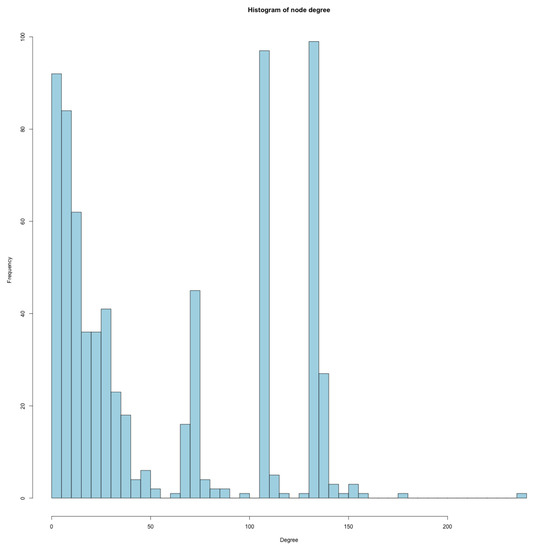 Histogram of node degree for the network in Figure 17.
