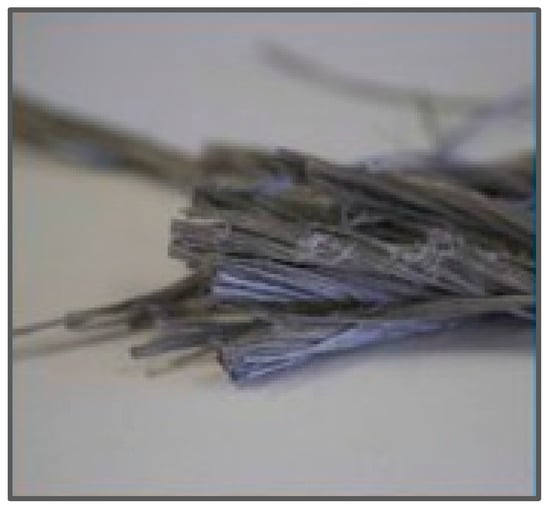 Fiber-reinforced concrete has gained wide popularity due to the beneficial effect of fibers in improving toughness and ductility, crack resistance, tensile strength, impact and fatigue resistance, and durability [1,2,3,4,5]. The use of macrofibers, such as steel fibers, as reinforcement in concrete is well-established in applications such as industrial pavements, precast structural elements, tunnel lining, etc. [3]. Several guidelines and specifications for steel-fiber reinforced concrete (SFRC) are currently available to support the design of elements and structures with such material [6,7,8,9]. However, in applications such as the precasting of thin elements, the use of rigid steel fibers is not the most suitable option, due to the reduced concrete workability, difficulties in placement and finishing, as well as hazards in handling due to the stiffness of the fibers. Therefore, there is a high demand for alternative fibers that can effectively overcome such limitations in fiber-reinforced concrete (FRC) for structural applications.