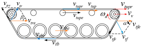 The upper part of the track is shown in Figure 7. The absolute speed of the upper part consists of the traction speed and relative speed .
