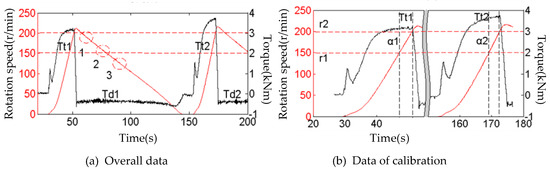 Suppose that the inertia of one stage in the flywheel box and driving components to be calibrated is and respectively. Then, the inertia to be simulated by the motor is . To achieve = , the inertia box and the tested motor are driven with the same torque to obtain the speed-up curve. By comparing the experimental results of the two groups, the calibration of the electric inertia simulation is completed.