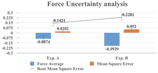 Force uncertainty experiment result analysis. All of the force information is recorded and analyzed for experiment A and B. Significant force uncertainty can be observed in experiment B, where the probe is attached on the sensor. The unit for the force is N.
