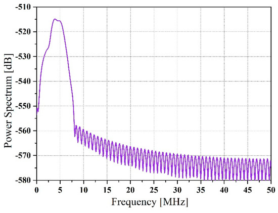 Here, the procedure for attenuation coefficient estimation is presented. Simulated RF data with a certain attenuation coefficient were generated using a sampling frequency of 100 MHz. Figure 5 shows a block power spectrum.