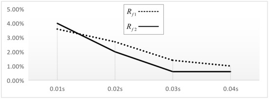 where Δv11_1, Δv11_2, and Δv11_3 are uncontrollable components and E1R is a fixed value. (v11_1–v11_2) is inversely proportional to ΔE1. Similarly, v12, v21, and v22 can result in the same conclusion. In the application, the larger Δt11, Δt12, Δt21, and Δt22 are, the smaller the result error is. The larger the difference between the Ra and Rb is, the smaller the result error is. The higher the vdc is, the smaller the result error is.