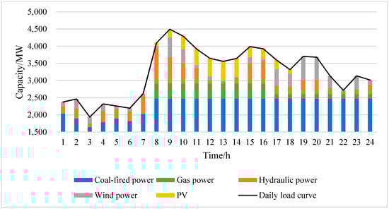A case study of a city power grid in 2019 was carried out to verify the effects of different penetrance on the benefits of the multi-energy coordinated control strategy, as well as the effects of different energy structures on the benefits. The power supply capacity proportion of the power grid is shown in Table 1.