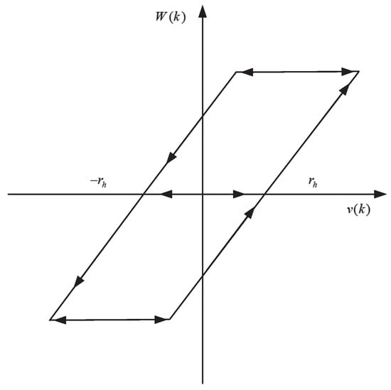 In this subsection, an MPI model is established to characterize the asymmetric hysteresis of the DEAP actuator. The MPI model is formulated as the cascade of the PI model and the dead-zone (DZ) model [], in which the PI model is a weighted superposition of play operators, and the DZ model is a weighted superposition of dead-zone operators. The play operator and the dead-zone operator are shown in Figure 3 and Figure 4, respectively.