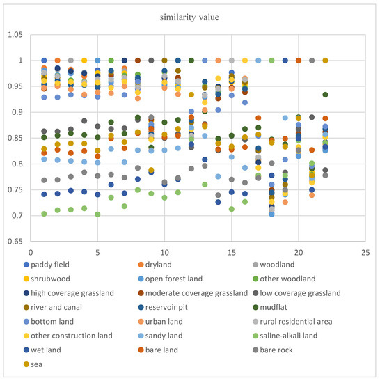 Scatter plot of similarity measures of land use types in Guangxi.