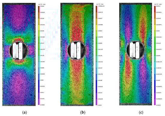 Figure 5 shows the full-field DIC strain data measured in a generic composite fabric OHC specimen considered in this work, with contour plots for the interlaminar normal