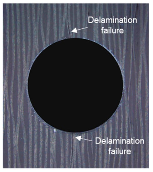 Figure 20 shows a cross-section image of a fabric OHC specimen after delamination failure under interlaminar tension. As shown in