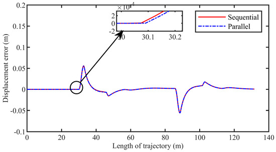 The real-time performance of parallel computation is obviously better than that of sequential computation, as shown in Figure 17. The maximum computation time for parallel computation was 0.0090 s, which was 30.77% smaller than that of sequential computation. The average computation time for parallel computation was 0.0044 s, which was 48.84% less than that of the sequential computation.