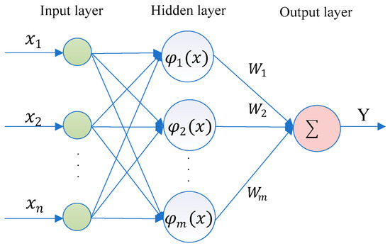 The radial basis function neural network is one of the extensively employed deep learning methods, which has good approximation, fast learning convergence and simple structure of feed-forward neural network. There are usually three layers of network structure, as shown in Figure 3 where denotes the th input element. The hidden layer contains m radial basis neurons, whose basis function responds locally to the input. is the activation function in hidden layer. When the input is close to the basis function, a large number of outputs will be generated. indicates the weight between the hidden layer and output layer. Y is the linear weighted sum of the output of hidden layer neurons.