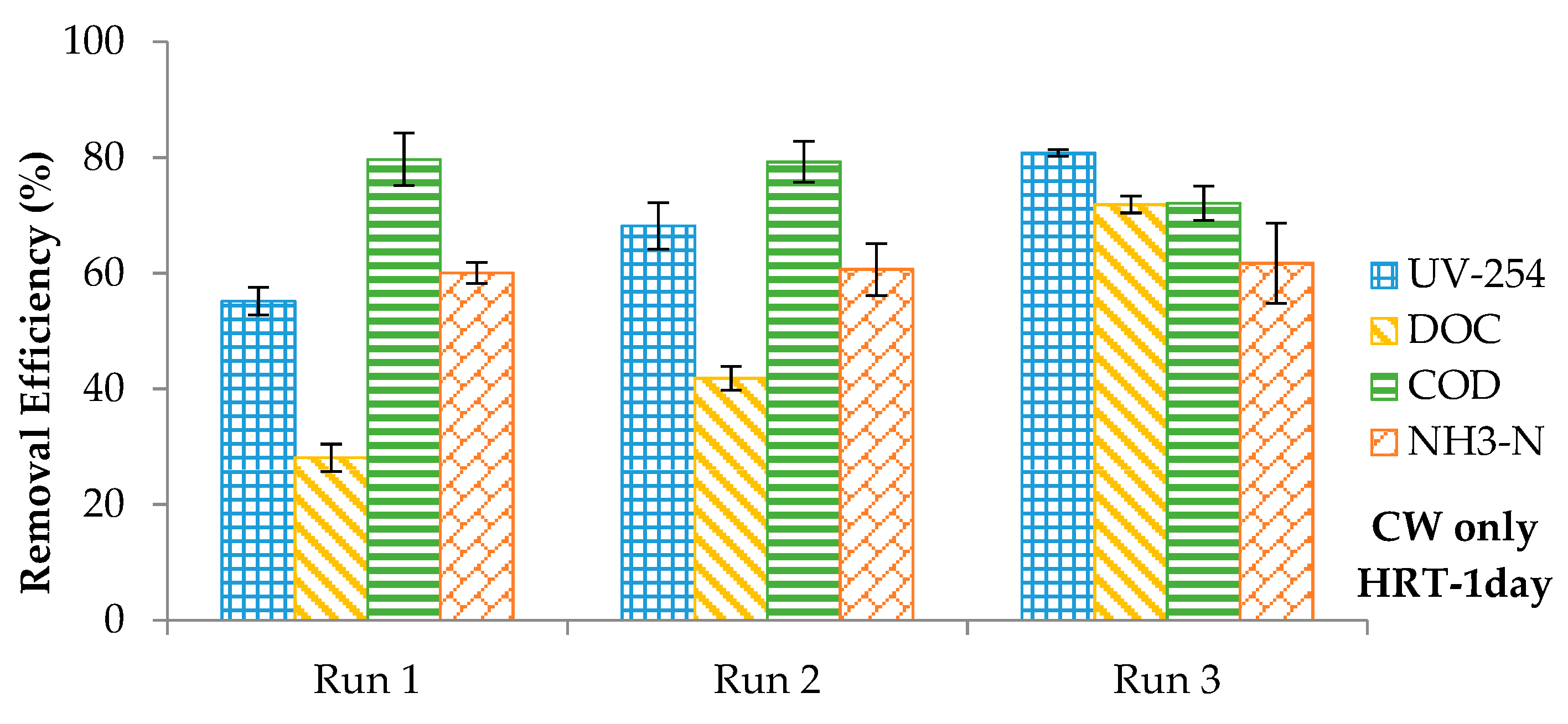 3.2. Effects of the HRT on the Treatment Efficiency of CW
