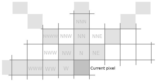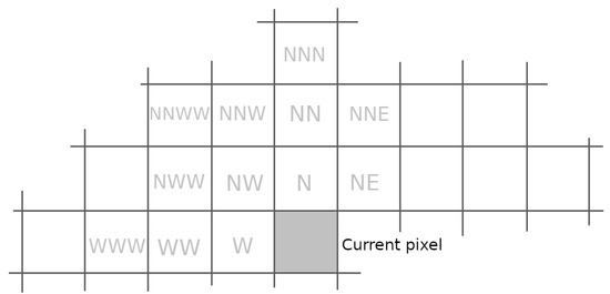 - Strutz, T. Context-Based Predictor Blending for Lossless Color Image Compression. IEEE Trans. Circuits Syst. Video Technol. 2016, 26, 687–695. [Google Scholar] [CrossRef]