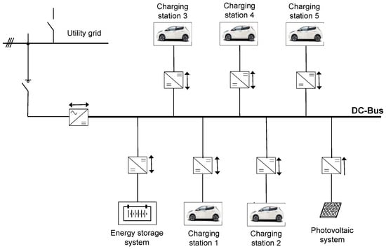 - Lu, X.; Liu, N.; Chen, Q.; Zhang, J. Multi-objective Optimal Scheduling of a DC Micro-grid Consisted of PV System and EV Charging Station. In Proceedings of the 2014 IEEE ISGT Asia Conference, Kuala Lumpur, Malaysia, 20–23 May 2014; pp. 487–491. [Google Scholar] [CrossRef]