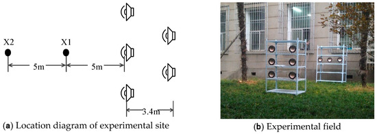The experiment was carried out in the 220 kV substation shown in Figure 1. After the discussion and analysis of Section 2, the noise level at the east, south, and north side of the substation has reached the environmental standard, but the noise level near the residential area in the west side was not up to standard. Noise in such areas needed to be reduced.