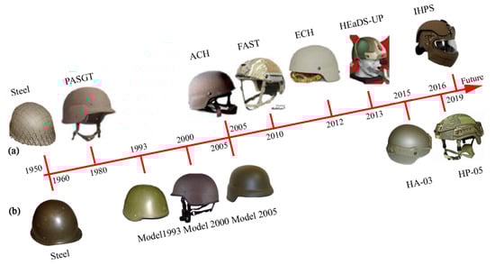 Evolution of helmets from World War II to the present day: (a) US Army; (b) Polish Army.