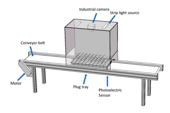 - Wang, Y.W.; Xiao, X.Z.; Liang, X.F.; Wang, J.; Wu, C.Y.; Xu, J.K. Plug cell positioning and seedling shortage detecting system on automatic seedling supplementing test-bed for vegetable plug seedlings. Trans. Chin. Soc. Agric. Eng. (Trans. CSAE) 2018, 34, 35–41. [Google Scholar] [CrossRef]