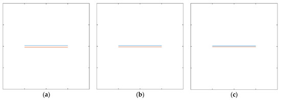 The target was two lines consisting of dense points with an interval of 0.1 between x = −5 and 5. The y coordinates of the two lines were ±0.2, ±0.15 and ±0.1, that is, the distance between the two lines was 0.4, 0.3 and 0.2, as shown in Figure 5.