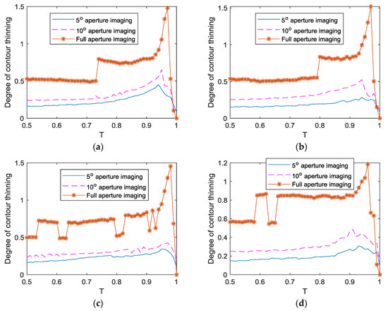 Intuitively, there are two ways to improve the contour thinning degree, one is to increase the perimeter, the other is to reduce the area. Firstly, the perimeter can be increased by adding new area, or by corroding the existing area to make the edges more complicated. However, neither method obviously makes the contour thinner. Therefore, it can only be achieved by reducing the area. If the stripes of the sub-aperture image can be narrowed, it is possible to reduce the target area of the final superimposed image.