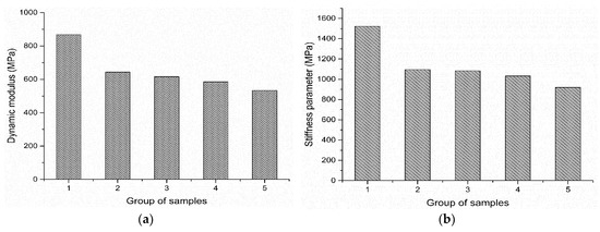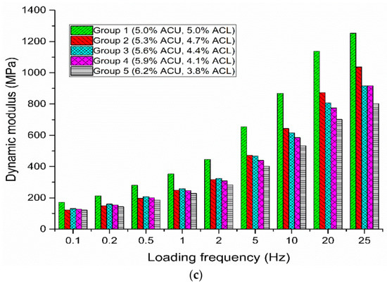 In this study, the dynamic modulus and the stiffness parameter were accessed at the intermediate loading frequency of 10 Hz and high testing temperature of 50 °C. The test results are shown in Figure 9.