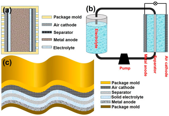 Based on packaging and practical application requirements, MABs can be classified as traditional static batteries, flow batteries, and novel flexible batteries [13]. In this part, three kinds of batteries will be discussed briefly. The latter part is based on the analysis of solid-state batteries.