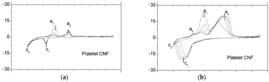 Cyclic voltammetry for Fe/C composite electrodes composited carbon nano-fibers (a) without and (b) with FeS additive [54] (Copyright © 2006, Elsevier).