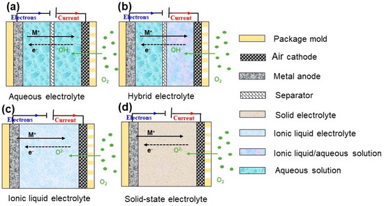An electrolyte is a medium to transport ions and electrons to ensure the continued oxidation–reduction reaction. Electrolyte divided into four types: aqueous, non-aqueous, hybrid, and solid state, as shown in Figure 13.