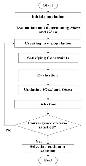 where , is the particle best of position i with dimension j and is the dimension j of Gbest. The PSO algorithm is depicted in Figure 2.